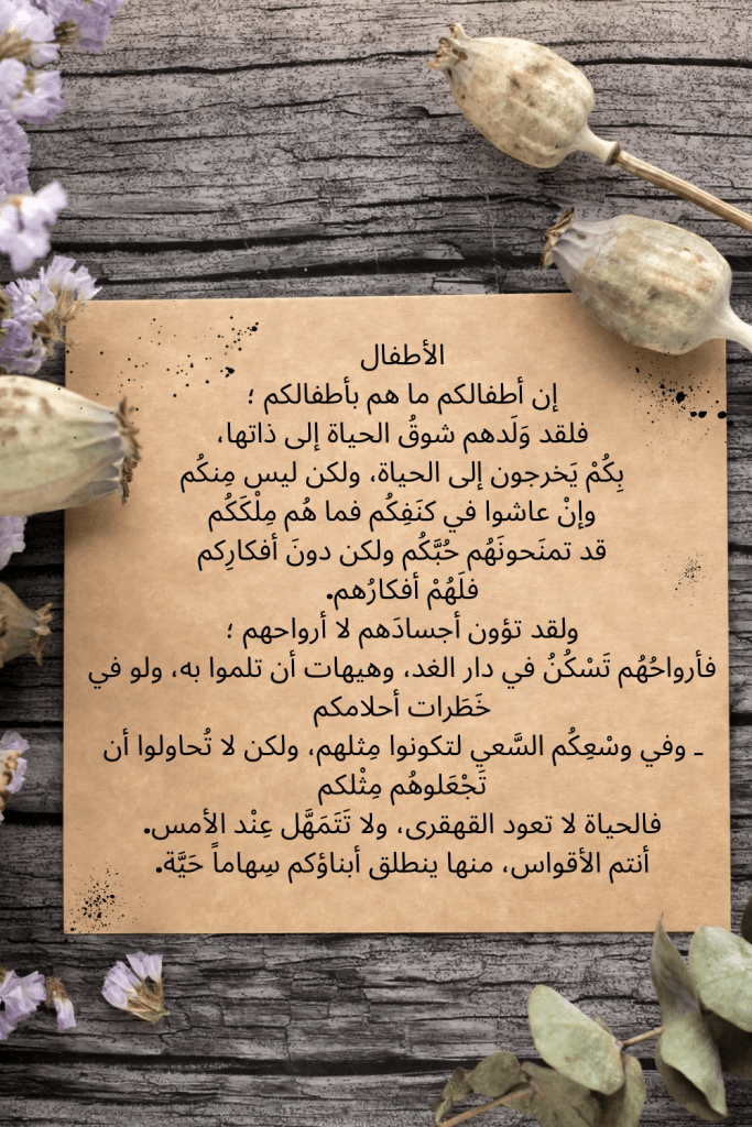 And a woman who held a babe against her bosom said, Speak to us of Children.
